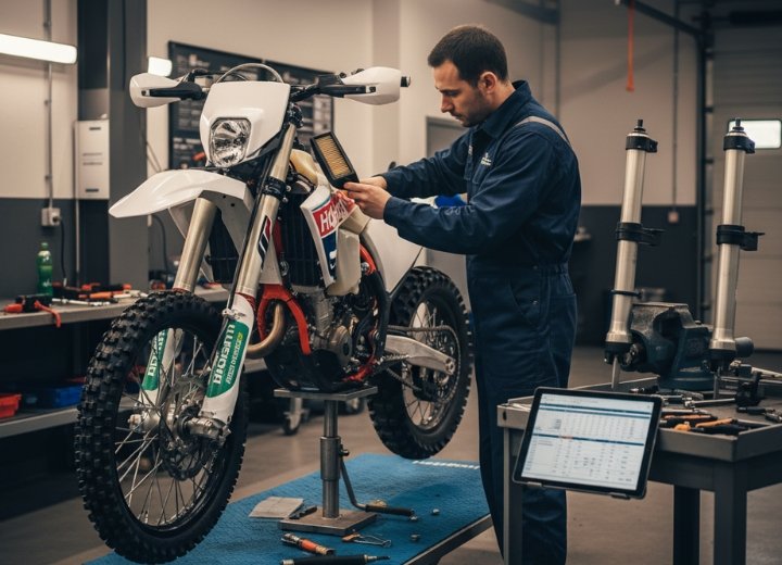 Each bike has a dedicated technical sheet that tracks its service history. After every tour, bikes are washed, inspected and serviced. The sheet is updated with the hours ridden during the expedition.